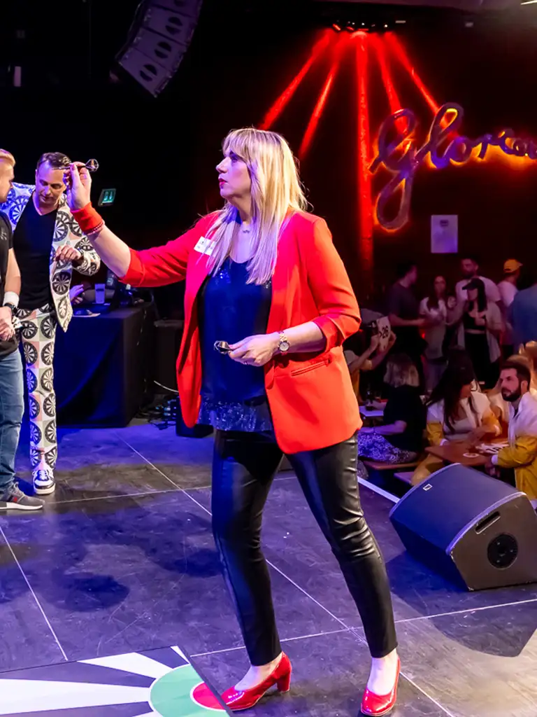 Uschi: Die beliebte Kölner Kneipenwirtin und Stimmungskanone brachte ihre Leidenschaft für Darts mit und mischte das Turnier ordentlich auf.